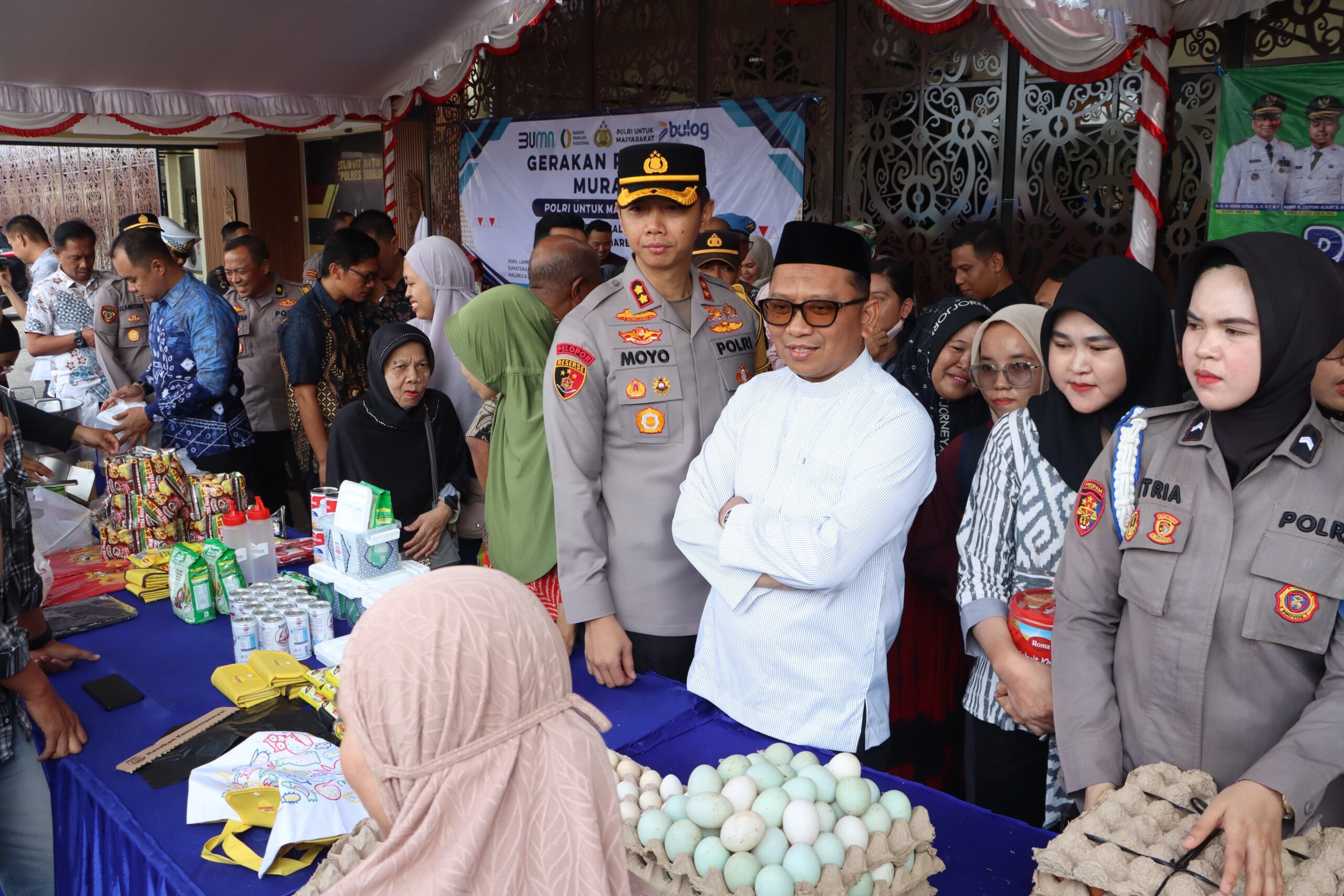 Polres Tabalong Gelar Gerakan Pangan Murah,Kapolres dan Bupati Borong sembako Berikan Kepada Pengunjung