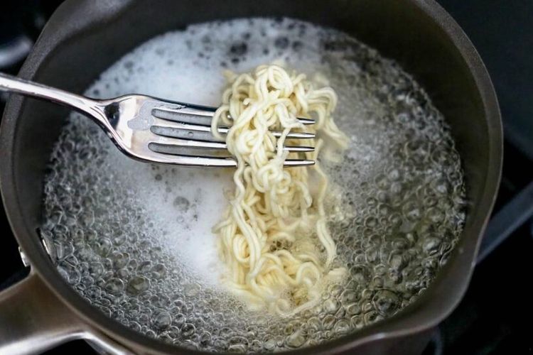 Waktu merebus mi yang disarankan yaitu sekitar lima menit.