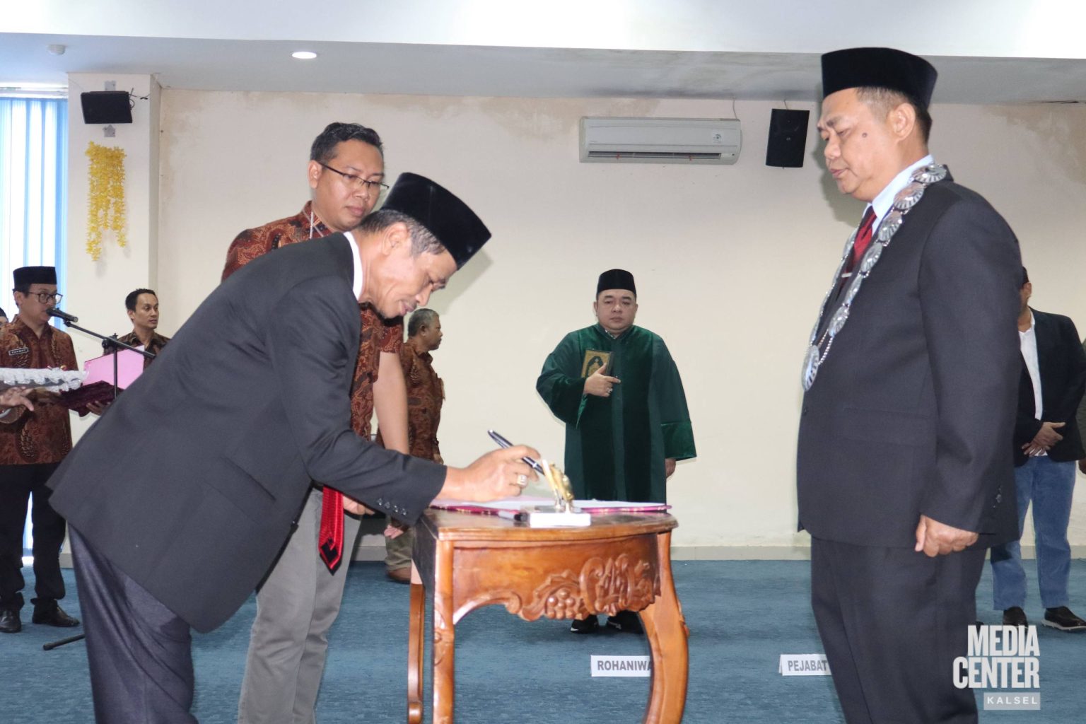 Gubernur Kalimantan Selatan, H. Muhidin melalui Staf Ahli Bidang Pemerintahan, Hukum, dan Politik, Adi Santoso, menghadiri Pelantikan, Serah Terima Jabatan, dan Pengambilan Sumpah Dekan Fakultas Ilmu Sosial dan Ilmu Politik (FISIP) Universitas Lambung Mangkurat (ULM) Periode Tahun 2025–2029. Kegiatan tersebut berlangsung di Aula Gedung Pascasarjana ULM, Banjarmasin, Selasa (30/12/2025).