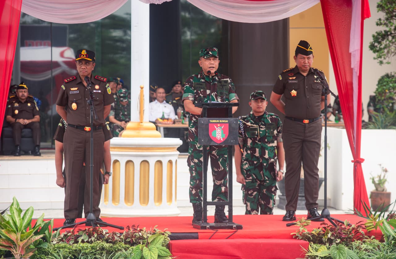 Kegiatan tersebut diawali dengan apel gelar pasukan yang dipimpin langsung oleh Pangdam XII/Tambun Bungai Mayjen TNI Zainul Ariffin, Kepala Kejati Kalsel Tiyas Widarto, dan perwakilan Kepala Kejati Kalteng Cakra Nur Budi Hartono.